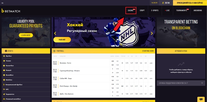 2) Захожу в casino: