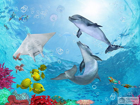 Обои дельфины, рисованные, zhivotnye, раздел Подводный мир . . .