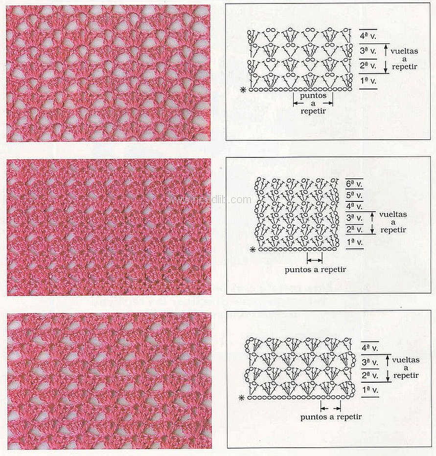 Ажурные и рельефные узоры крючком - образцы и схемы