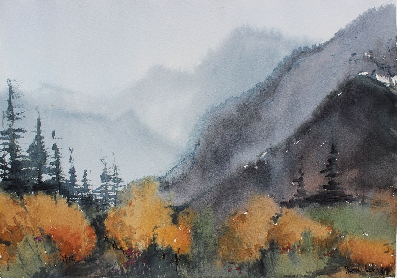 Рисунок осень в горах
