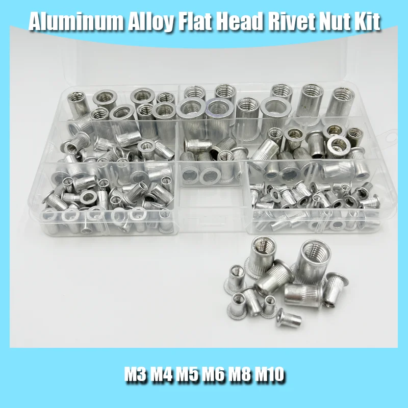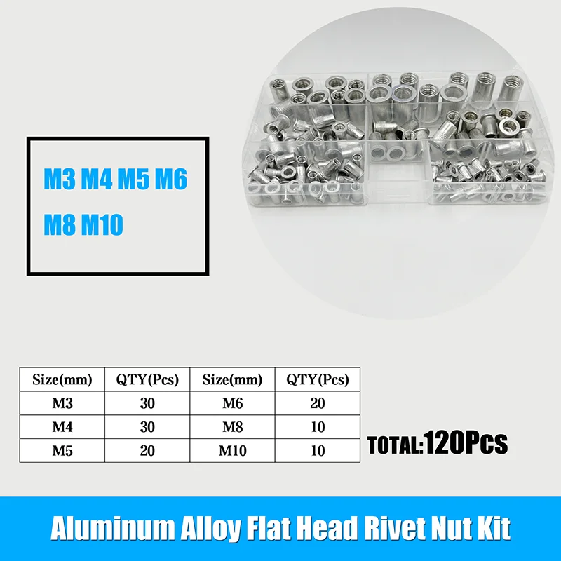 Rivet Nuts 120Pcs/Set M3 M4 M5 M6 M8 M10 Aluminum Rivet Nuts Flat Head Thread Insert Nut Rivet Cap Set Thread Insert Rivet Nut - Купить с бесплатной доставкой