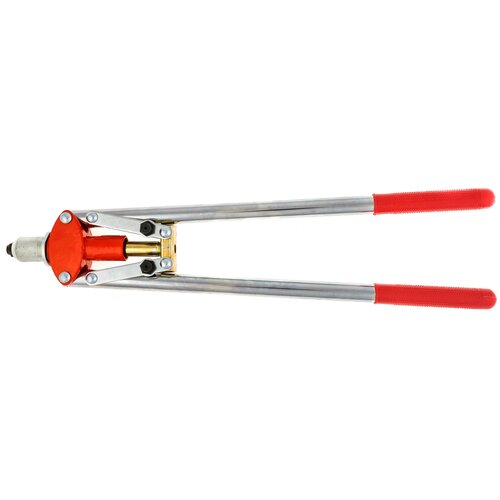 Riveteuse électrique avec poignées allongées 425 mm "888". Métal nickelé. L'ensemble comprend 3 buses de remplacement. Le manche est recouvert de plastique galuchat. La taille des rivets utilisés est de 2,4/ 3,2/ 4/ 4,8 mm.