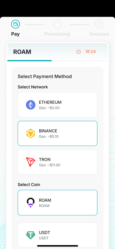 Roam App now supports payments using its native token, $ROAM. Users can use $ROAM to purchase eSIM packages, top up balances, or unlock other prepaid services. Payments are facilitated via the Pelago payment gateway. The system automatically converts the required token amount based on real-time exchange rates to ensure a smooth, secure payment experience—and to further enhance $ROAM’s utility within the ecosystem.