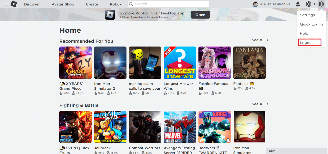 Roblox log out