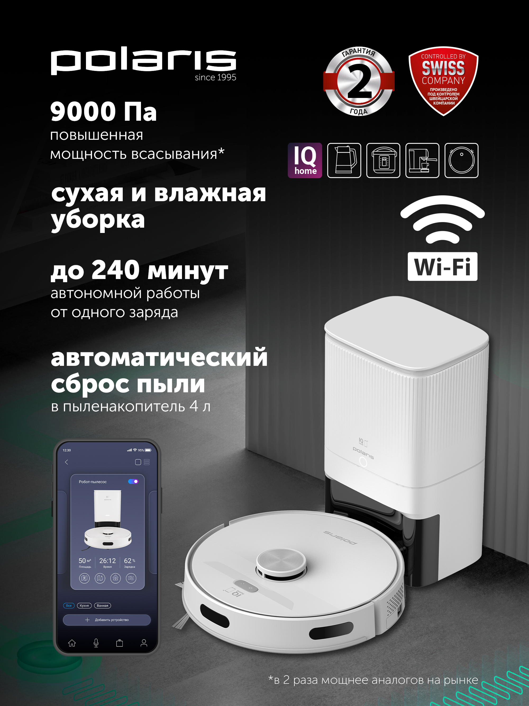 Робот пылесос pvcrdc 6002 wifi iq
