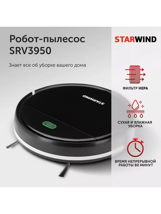 Робот пылесос starwind srv3950 18вт черный