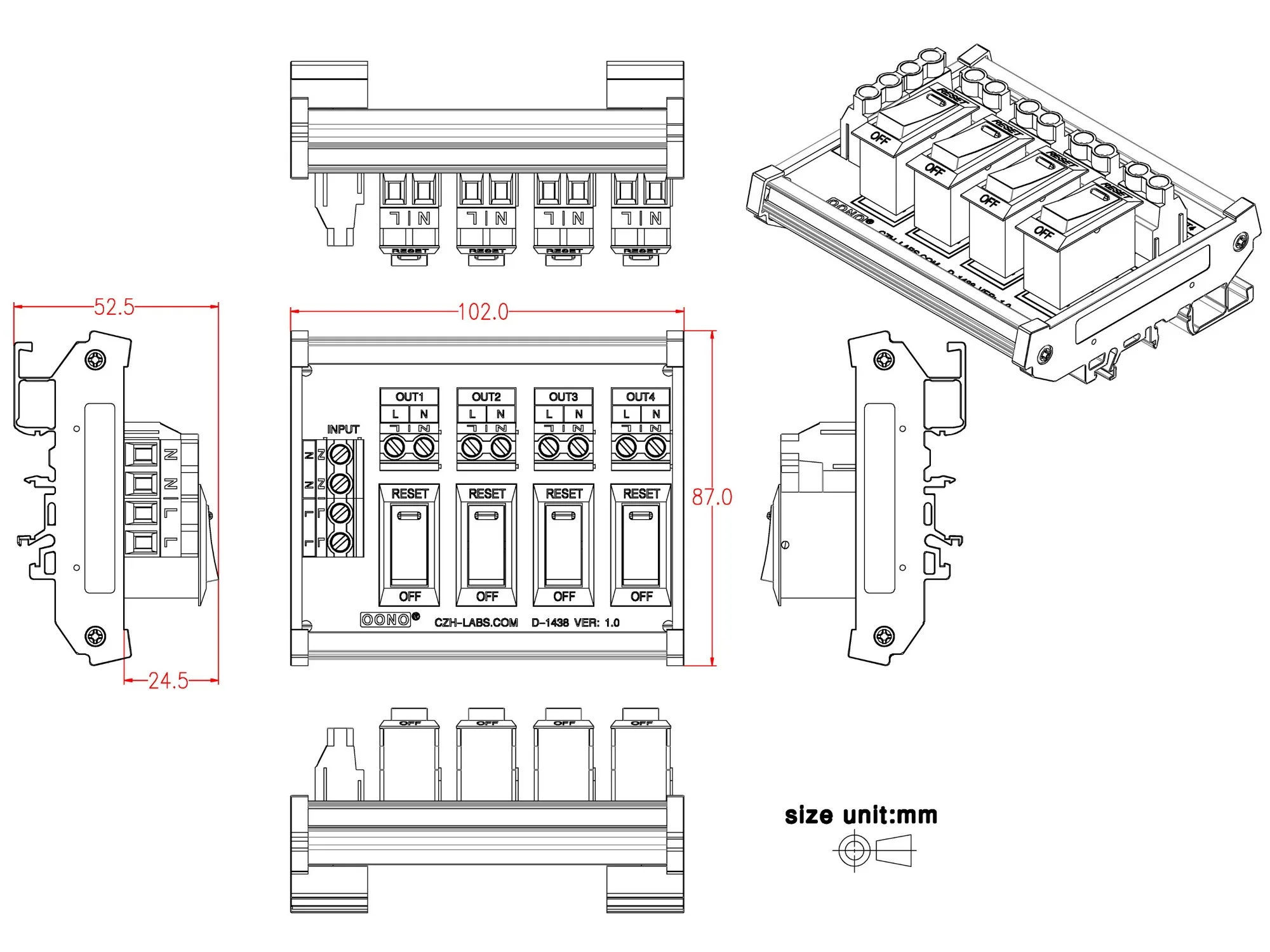 exKUzbDeHere you can buy Rocker Switch Thermal Circuit Breaker Overload Protector 4 Channel Power Distribution Module DIN Rail Mount with free delivery to your post office.