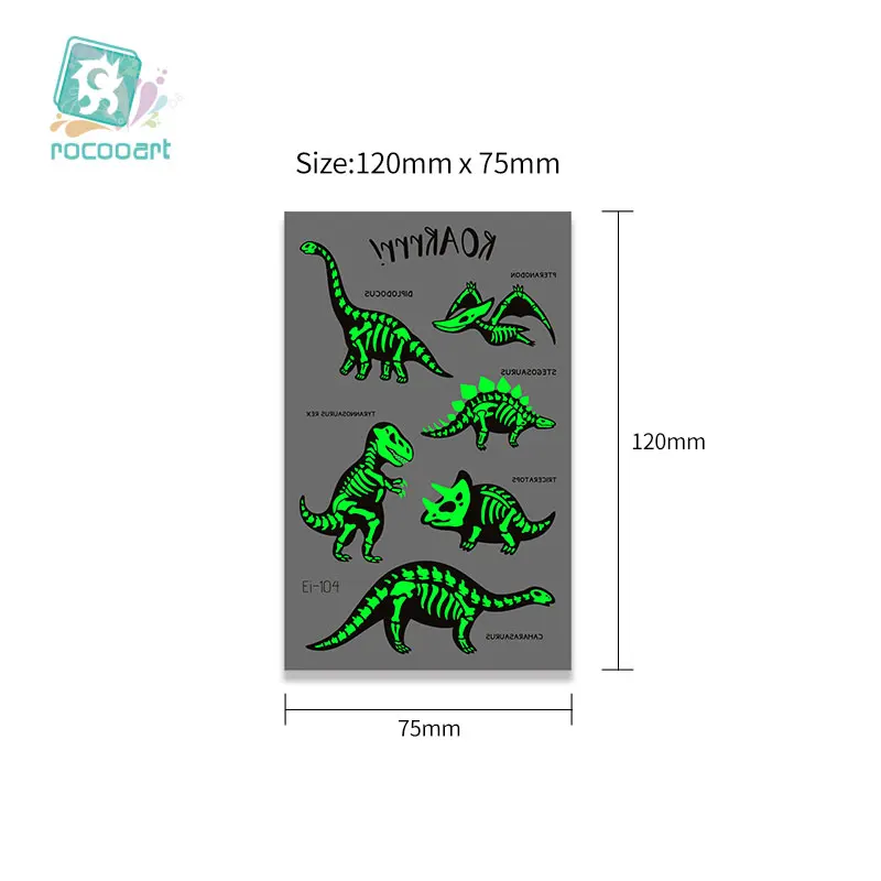 TdaBoMYMLooked for Rocooart Glowing in the Dark Tattoo Sticker Cartoon Animal Dinosaur Cool Luminous Temporary Tattoo Fake Taty For Boy Children for a long time, but could not find it? Bring to your attention Rocooart Glowing in the Dark Tattoo Sticker Cartoon Animal Dinosaur Cool Luminous Temporary Tattoo Fake Taty For Boy Children with the best price!