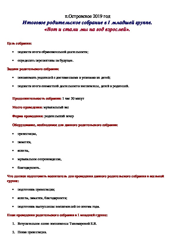Родительские собрания 1 мл гр