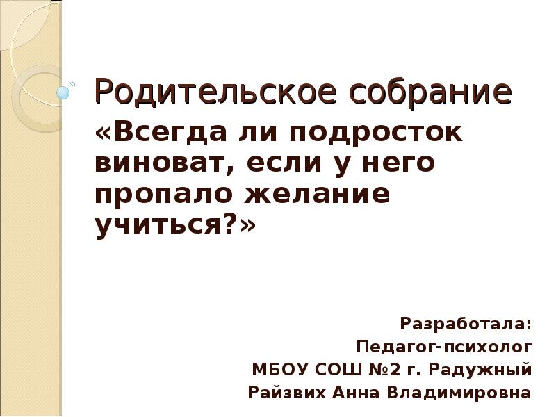Родительские собрания психолога 7 класс