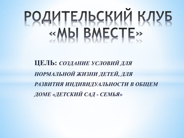 Родительский клуб это