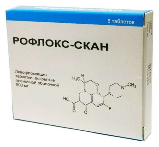 Рофлокс-Скан (Roflox-Scan) представляет собой противомикробный препарат . Действующее вещество: Левофлоксацина гемигидрат . Обладает бактерицидным действием . Максимальная концентрация достигается через 1-2 ч . Биодоступность Рофлокс-Скана составляет 99% . Содержание статьи Инструкция по применению Рофлокс-Скана Способ применения и дозировка Состав