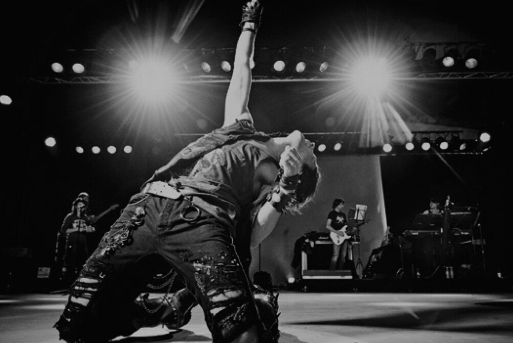 Рок исполнитель пел