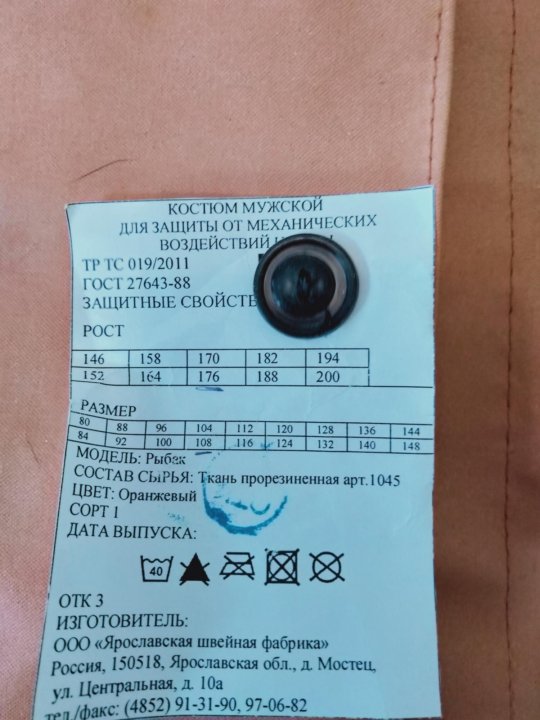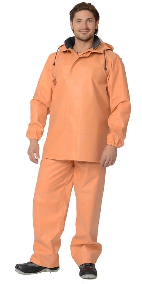 - костюм мужской для защиты от воды тип А, состоящий из куртки с капюшоном и полукомбинезона - цвет оранжевый - швы проклеены специальной лентой - основной материал: Ткань "Диагональ-прорезиненная", плотность 550 гр/м2 стойкой к действию морской воды, рыбьего жира и нефтепродуктов