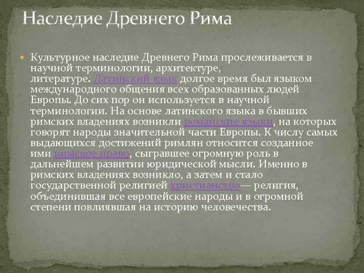 Роль античного наследия