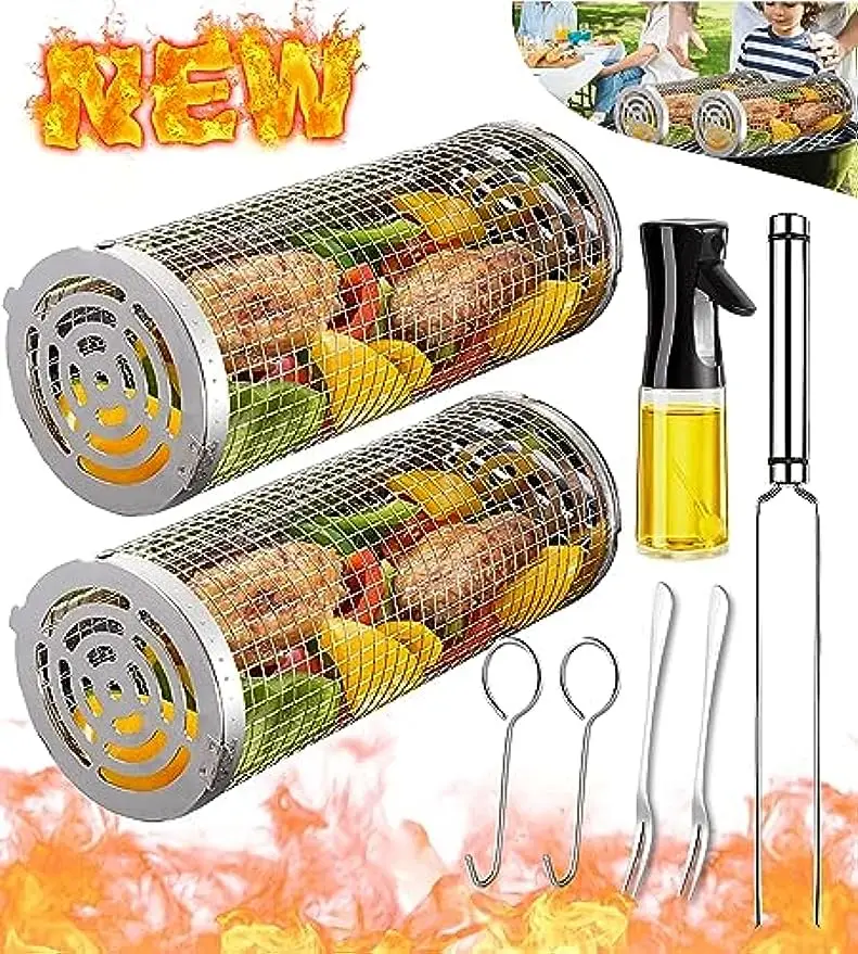 OESVgPFyHere you can buy Rolling Grilling Baskets for Outdoor Grill Bbq Net Tube Stainless Steel Large Round Mesh Rotation Barbecue Cylinder Cage Cooking with free delivery to your post office.