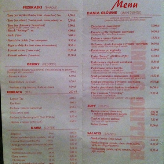 Роллинг стол меню