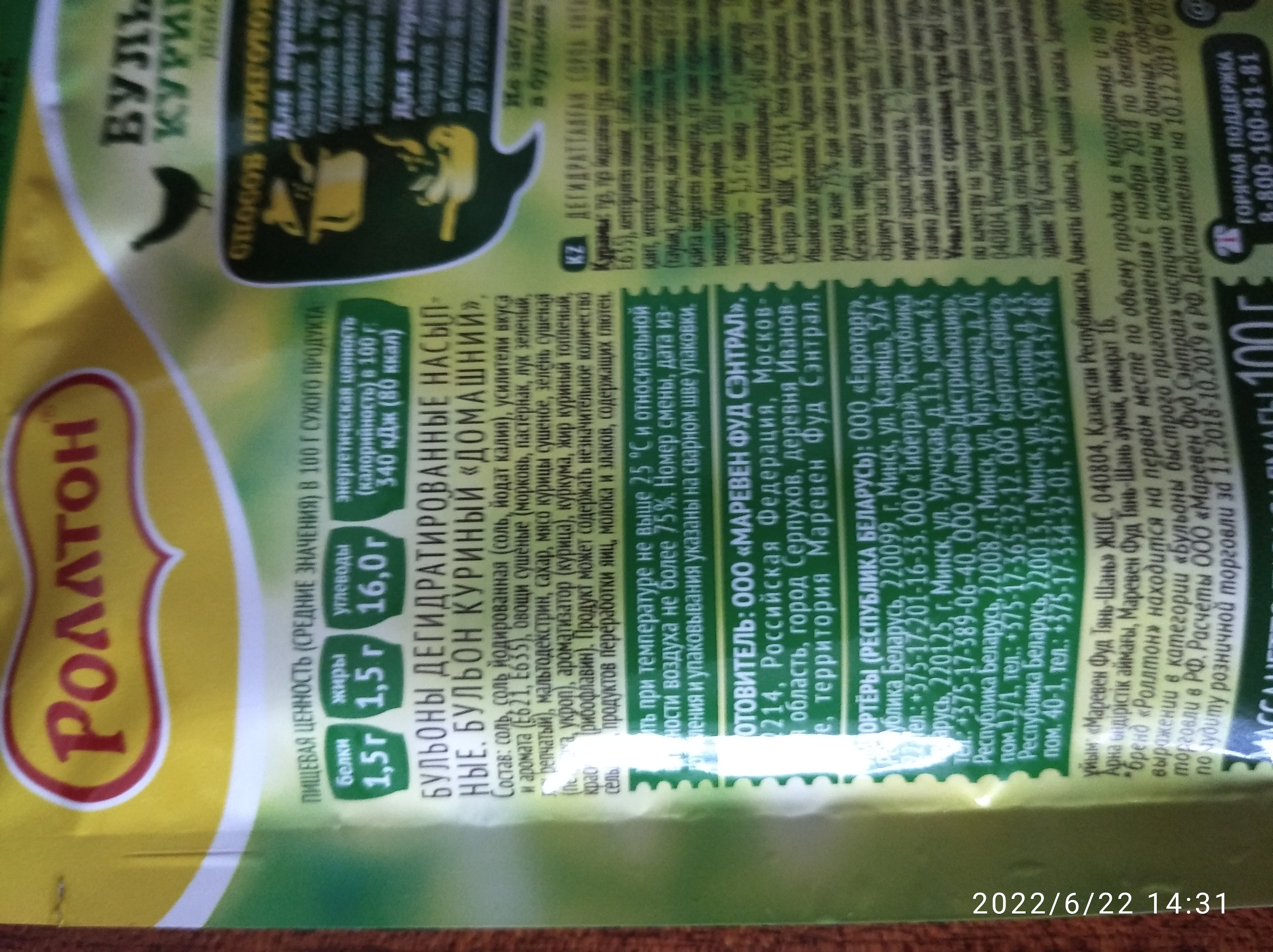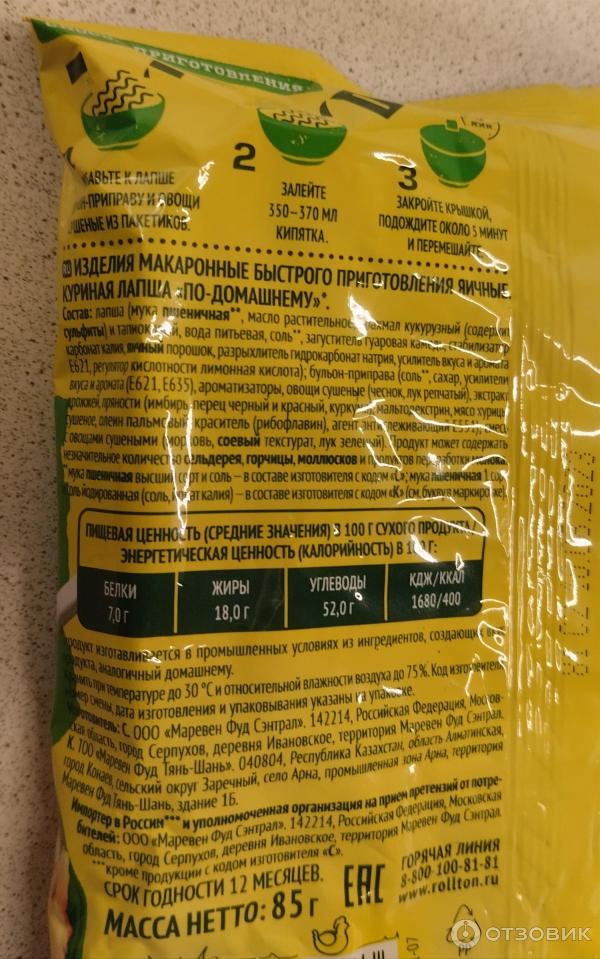 Роллтон куриный состав