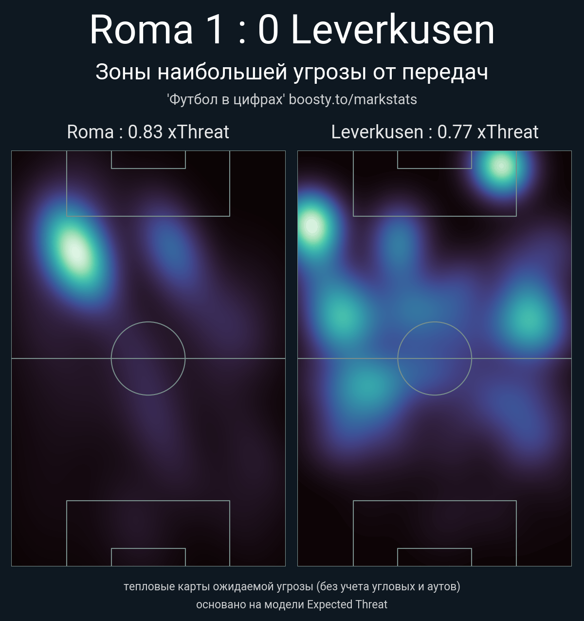 xThreat без учета угловых: 0.83 - 0.77