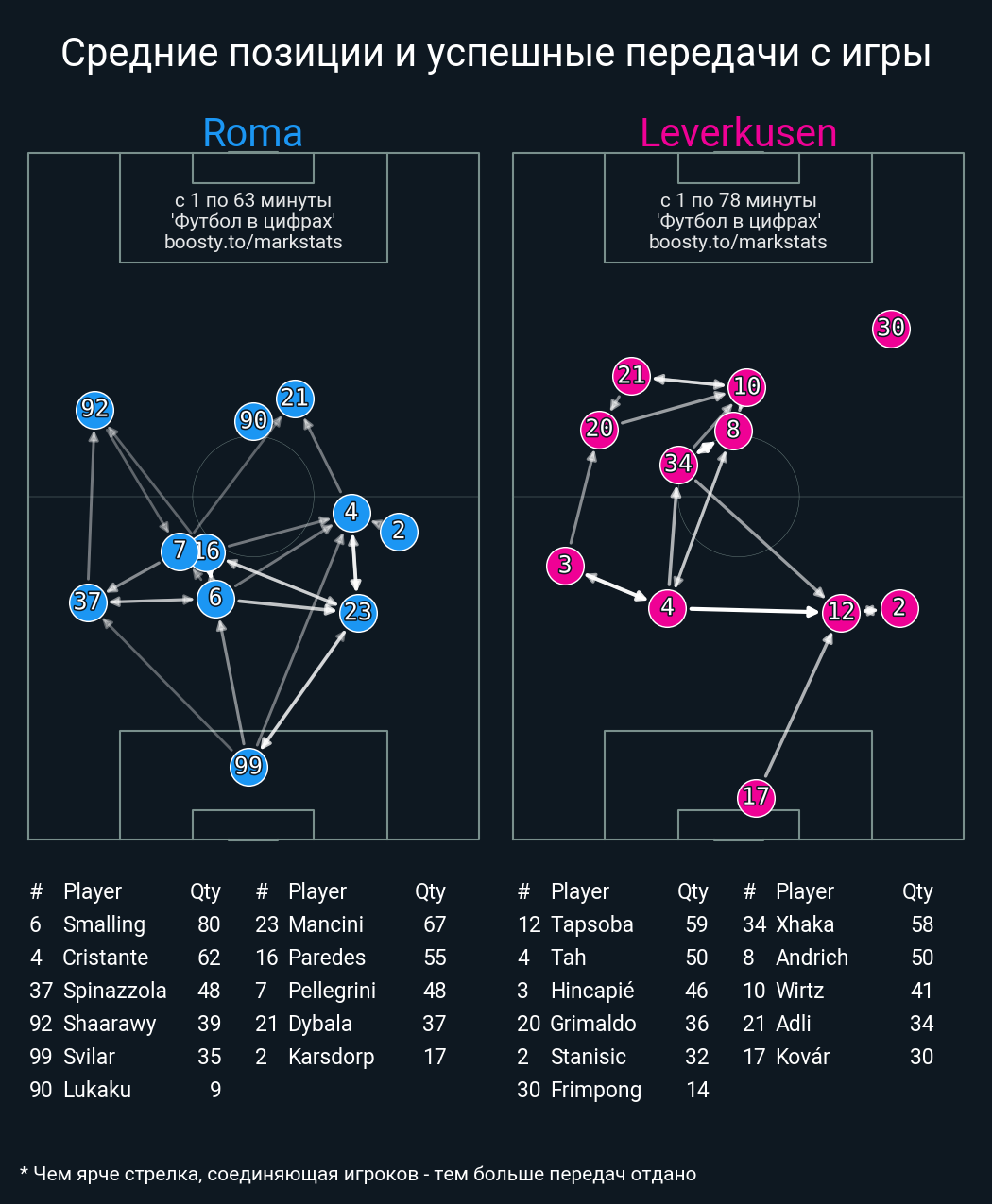 63 успешных передач из 73 попыток (1 под удар, 7 с продвижением, 3 на трети соперника)