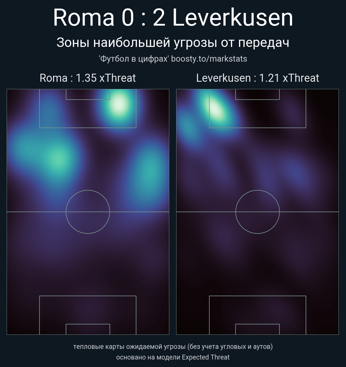 xThreat без учета угловых: 1.35 - 1.21