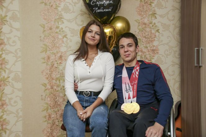 Роман Жданов с женой Викторией . Фото: Виталий Барабаш . Трехкратный паралимпийский чемпион Роман Жданов живет на первом этаже обычной панельной пятиэтажки .