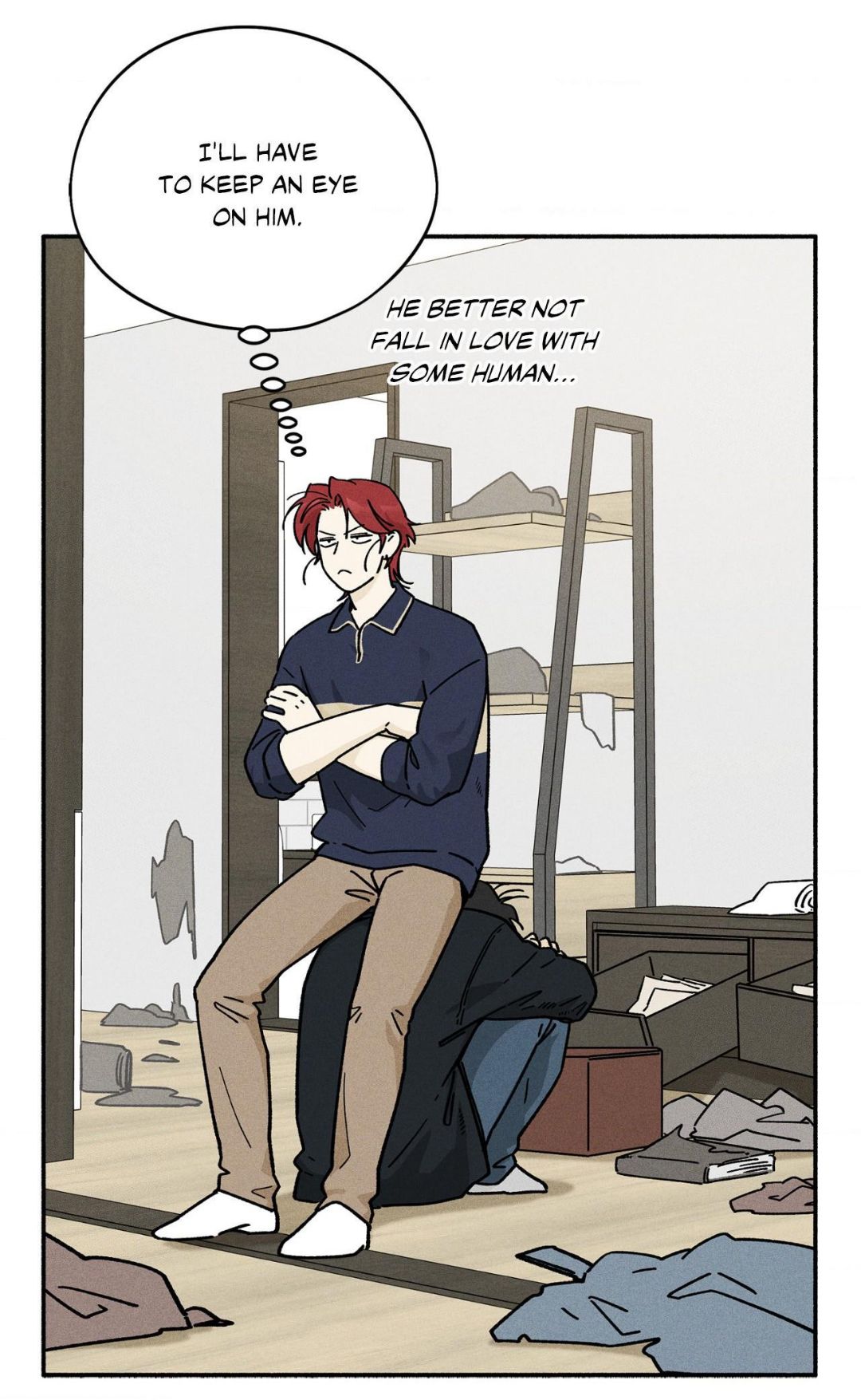* Мне придётся приглядывать за ним. Лучше бы ему не влюбляться в какого-нибудь человека... *