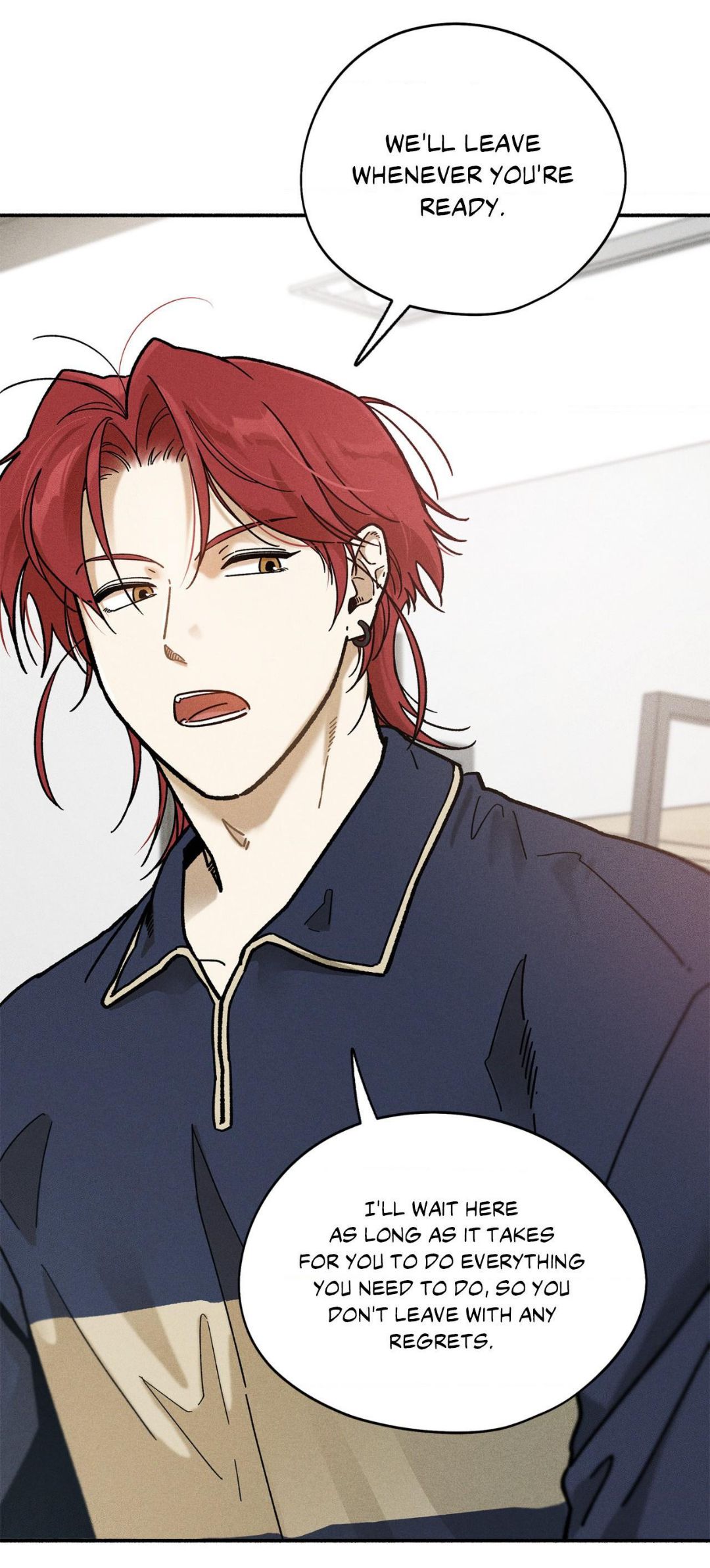 — Мы уедем, когда ты будешь готов. Я буду ждать здесь столько, сколько потребуется, чтобы ты сделал всё, что тебе нужно, чтобы ты ушёл, ни о чём не жалея.