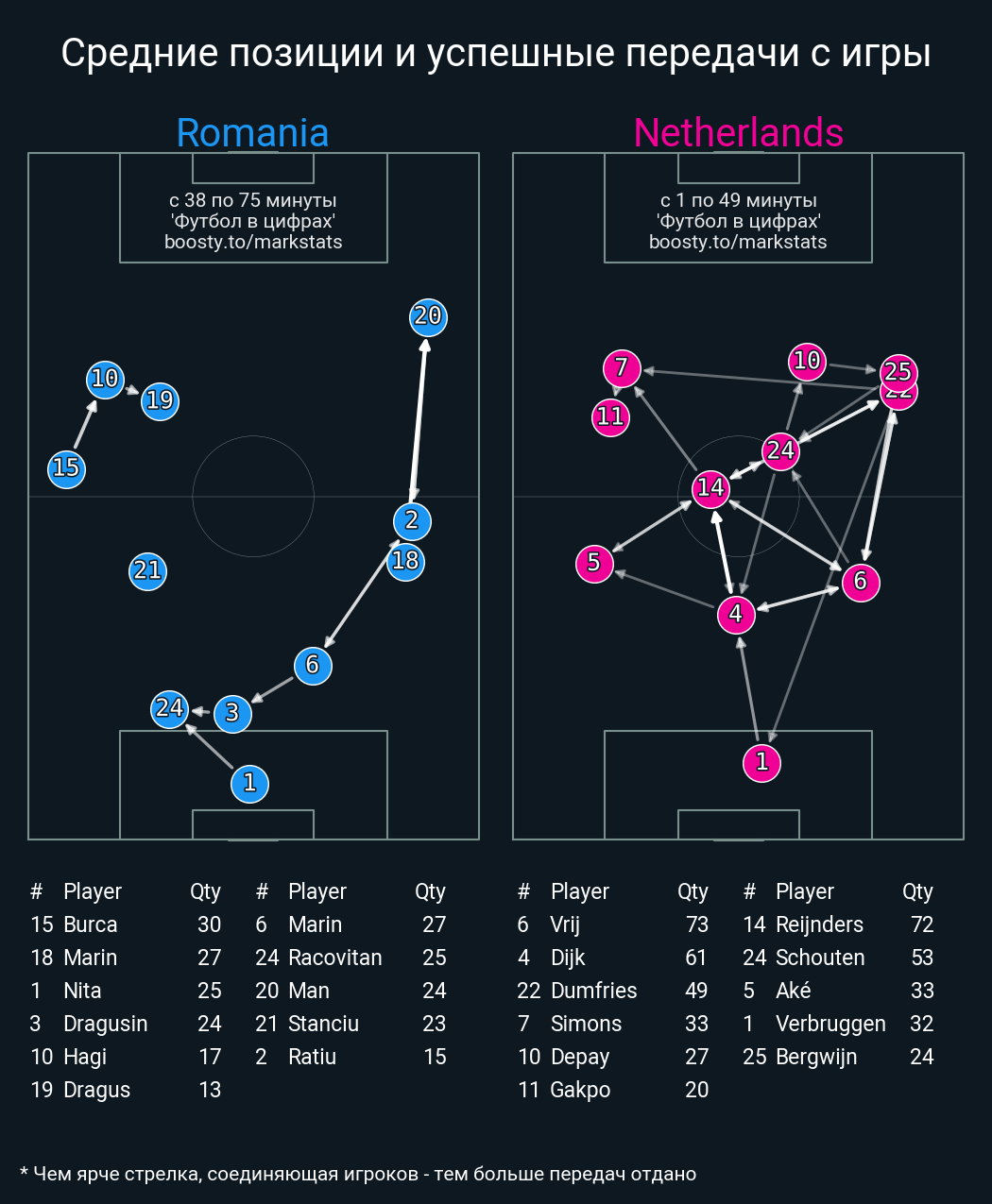 68 успешных передач из 74 попыток (8 с продвижением, 5 на трети соперника)