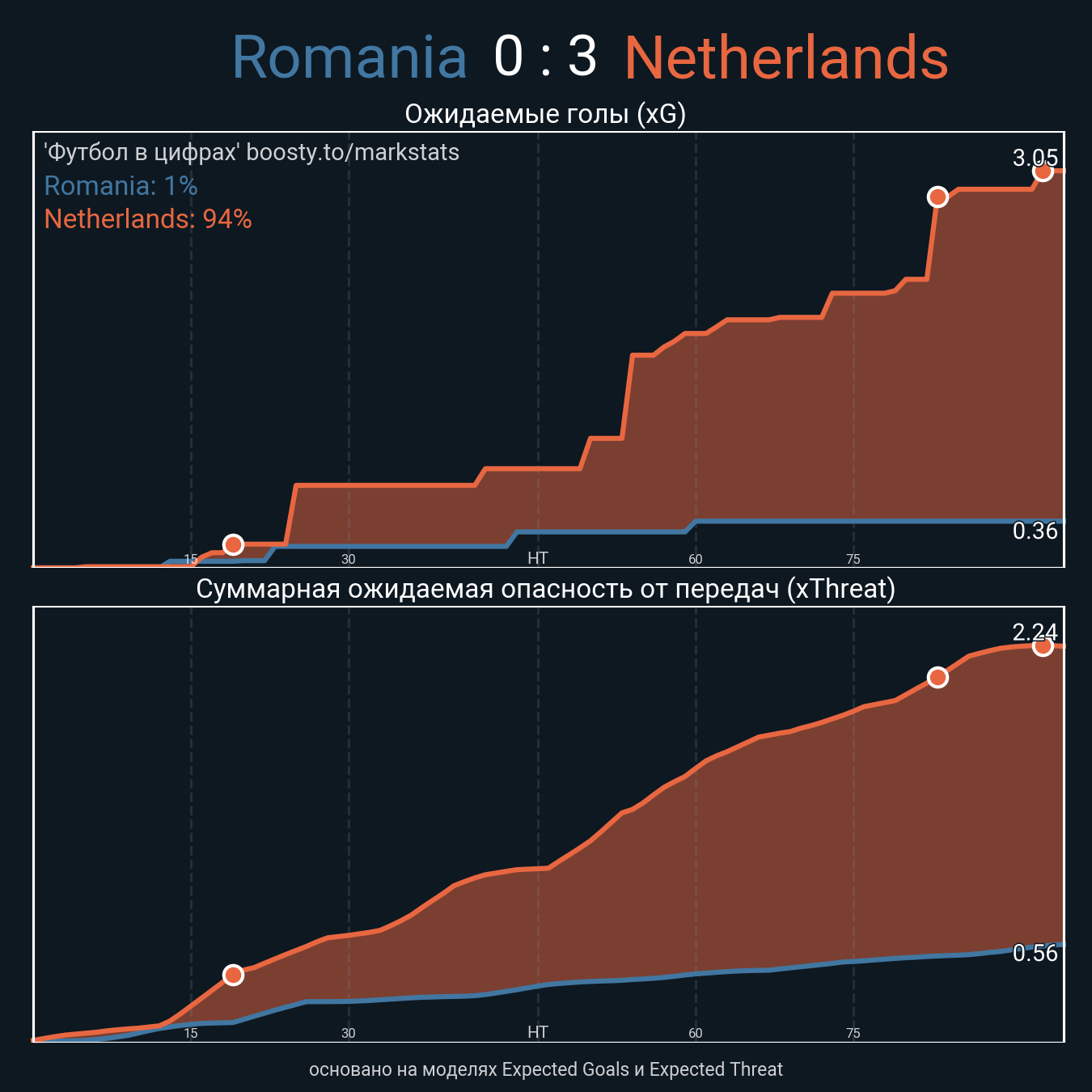 Ожидаемые голы (NPxG): 0.36 - 3.05