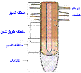 منطقه طویل شدن: یاختههای حاصل از تقسیم یاختههای مریستم ریشه در این ناحیه طویل میشوند.