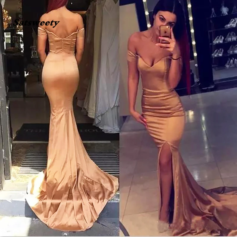 "Rose Gold Prom Dress Sexy Side Split Mermaid Long Satin Evening Dress Formal Gala Celebrity Dress vestido de festa longo" * Buy Now Just For 50$