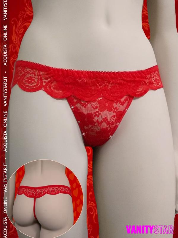 Seducente chemise rossa realizzata in tessuto molto elasticizzato con pizzo trasparente sul seno, sul ventre e su tutta la schiena . Incluso nella confezione anche il perizoma rosso coordinato AGGIUNGI AL CARRELLO