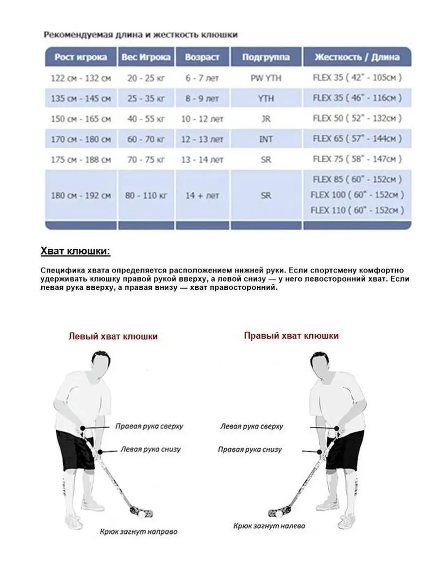 Рост клюшки для хоккея