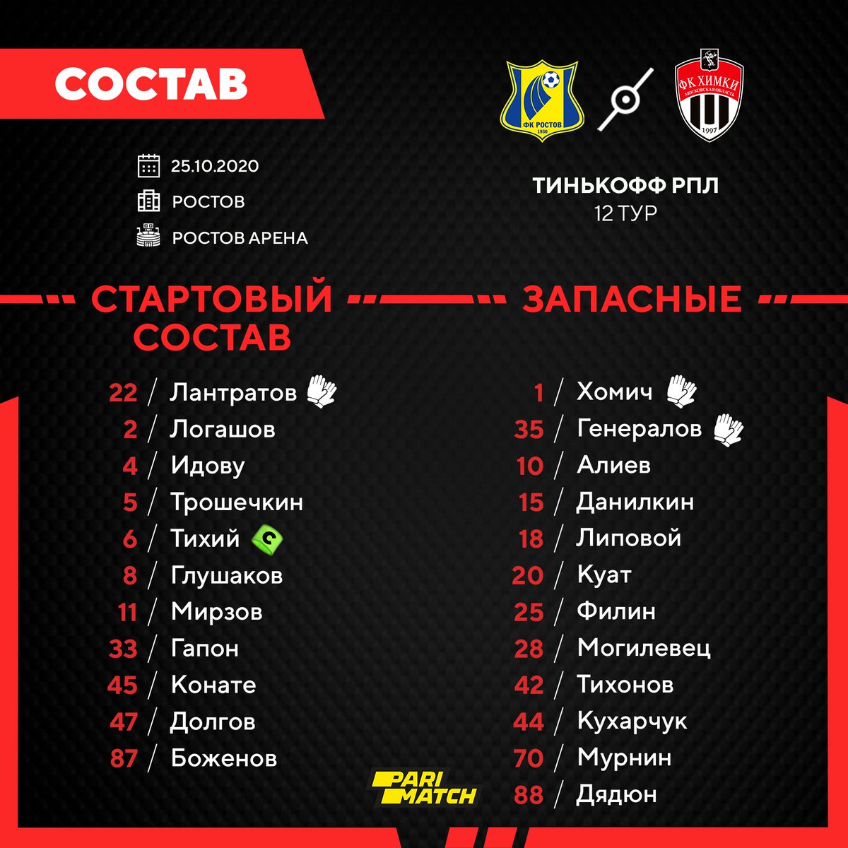 Ростов химки составы на матч