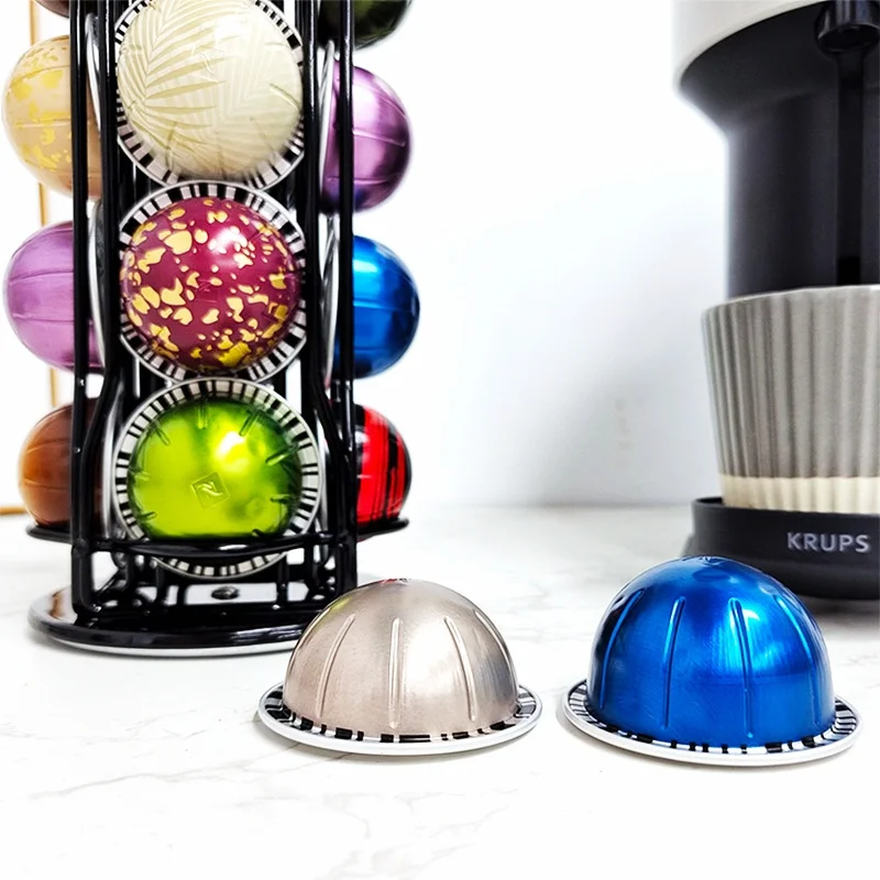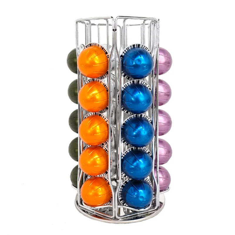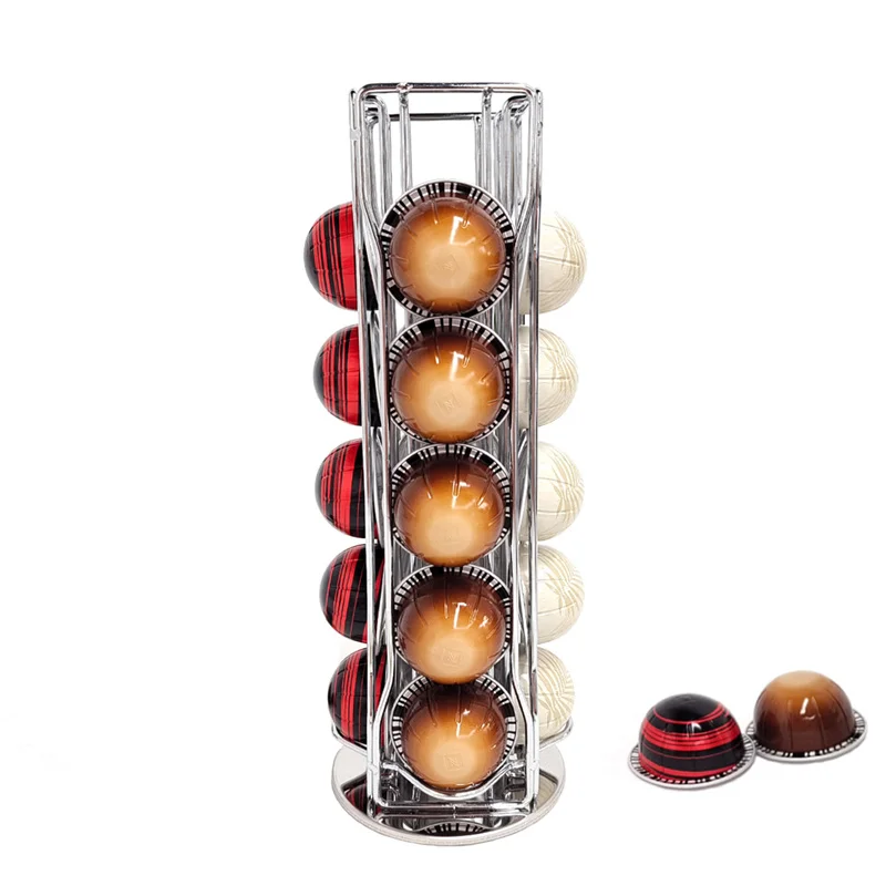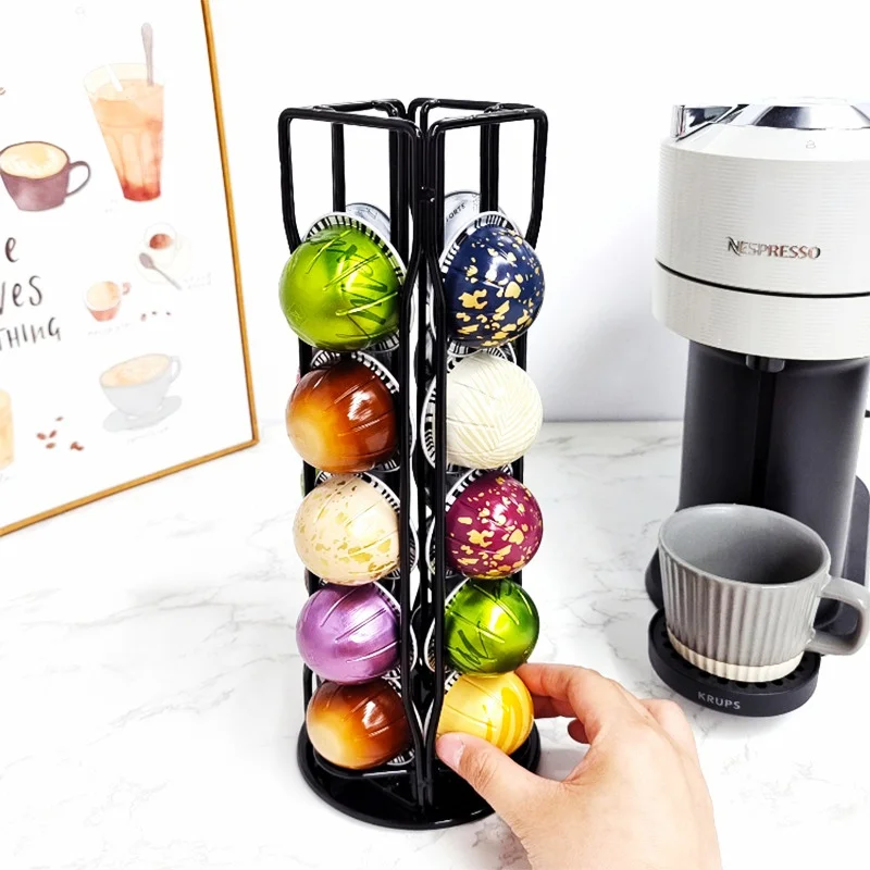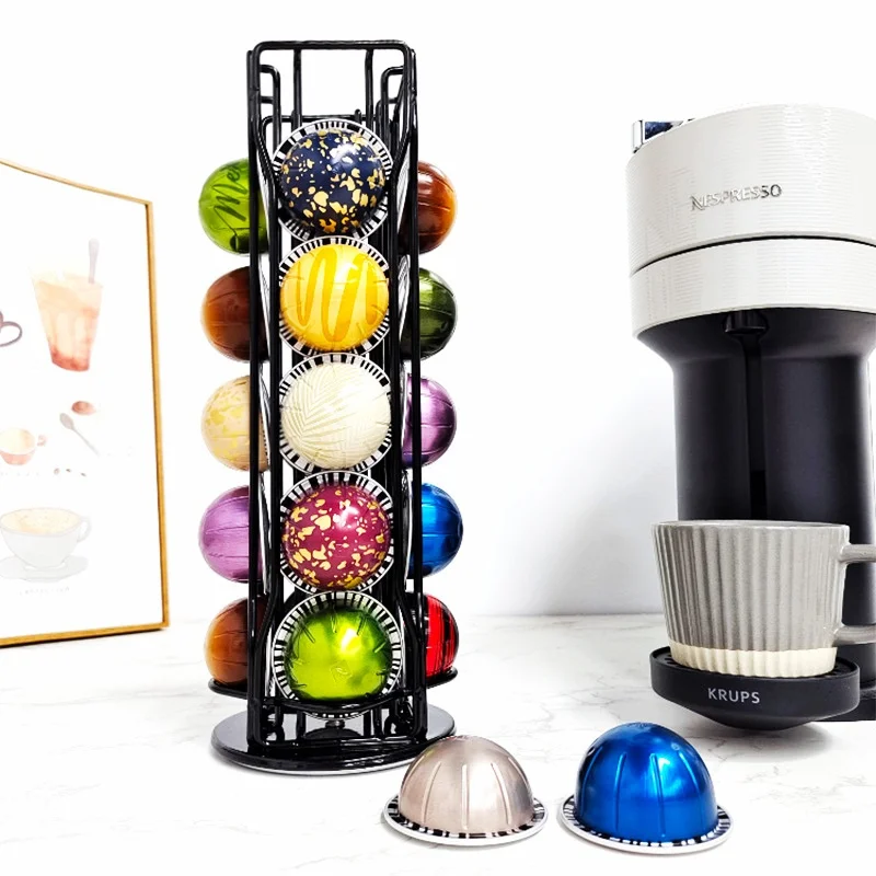 NEqTdKarvHere you can buy Rotatable Metal Coffee Pod Holder Stand - High-Quality Display Rack for Vertuoline Capsules, Black/Silvery Plating with free delivery to your post office.