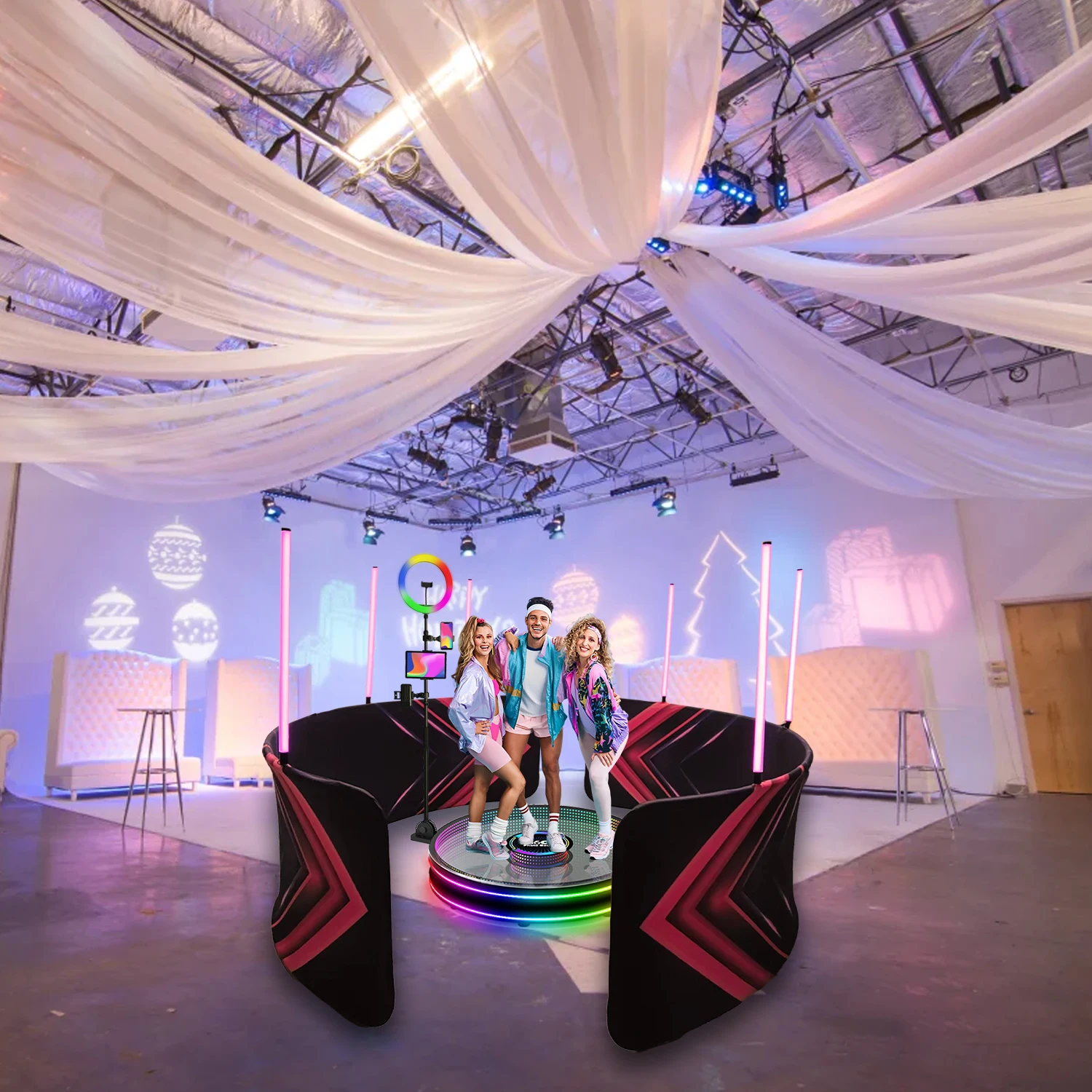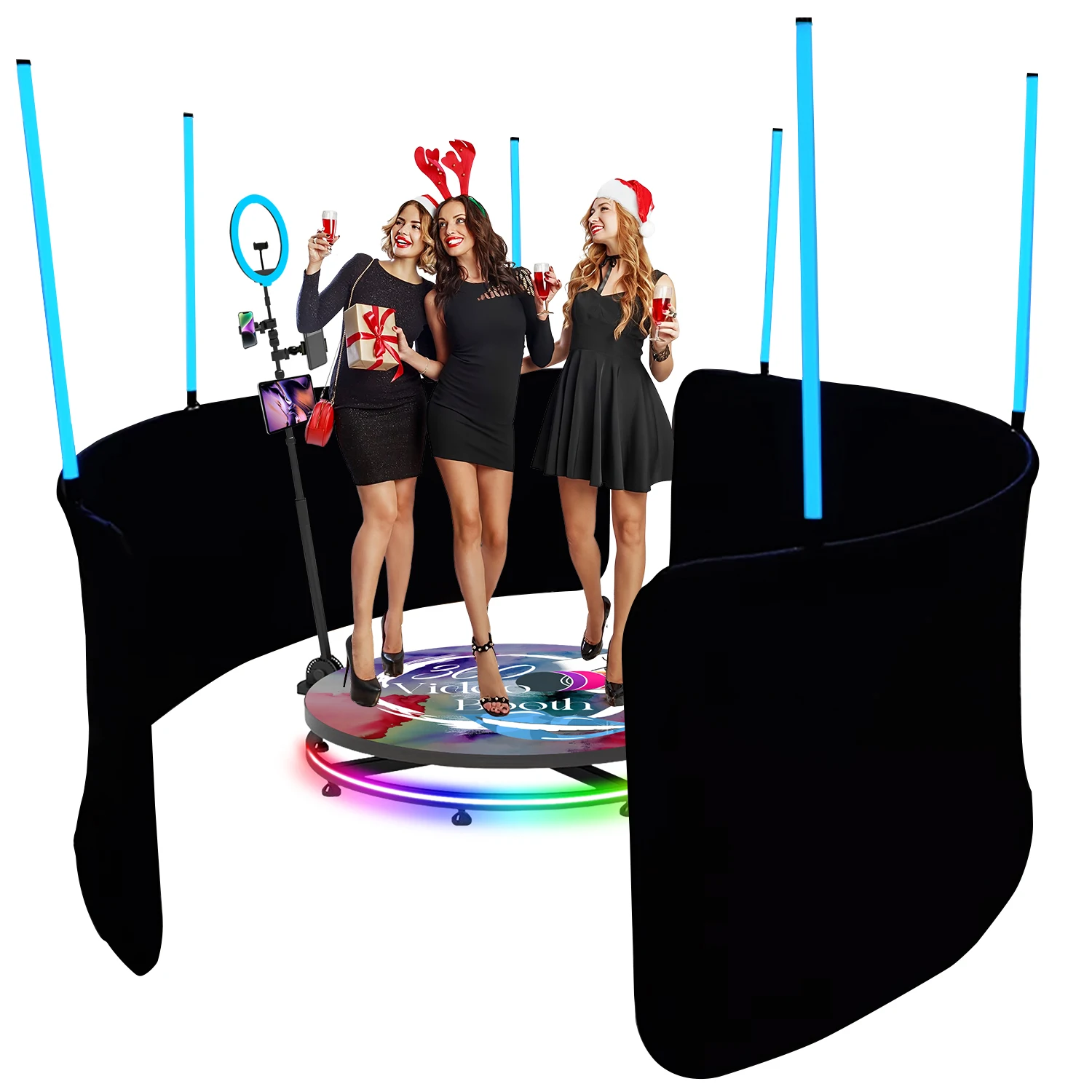 kUeFExyrHere you can buy Rotating 360 Photo Booth Enclosure Backdrop with RGB Led Fill Light 360 Video Booth Background free Customize LOGO with free delivery to your post office.