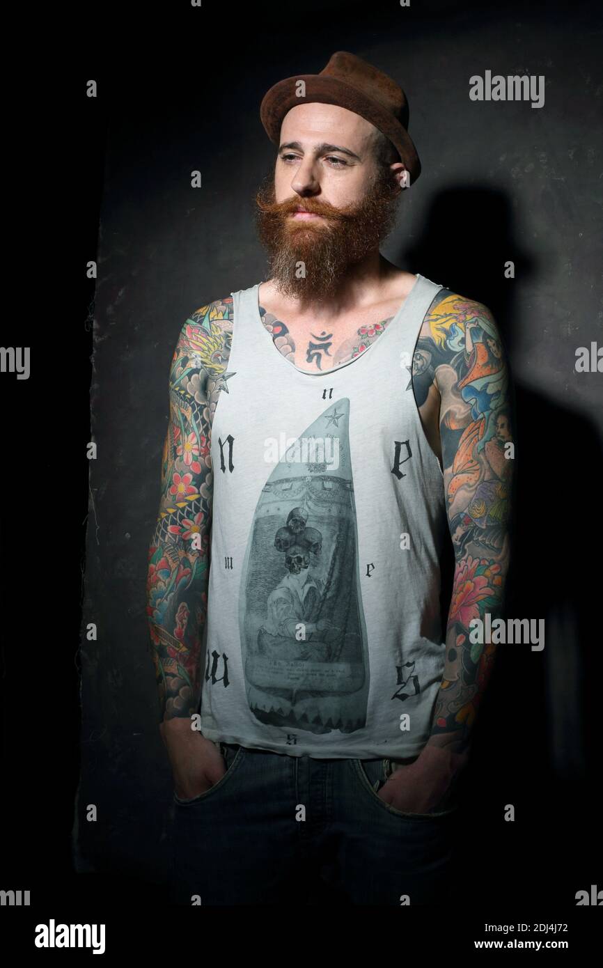 Rotschopf mit Tattoos