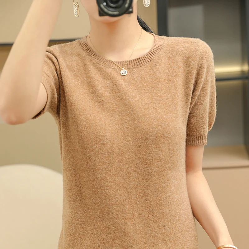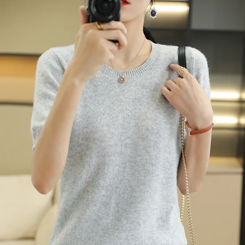 «Round Neck Sweater Women's Short-Sleeved Spring And Summer New Solid Color Bottoming Shirt Loose All-Match Thin Pullover Sweater» по лучшей цене на рынке! Всего за 20$ (1900рублей)