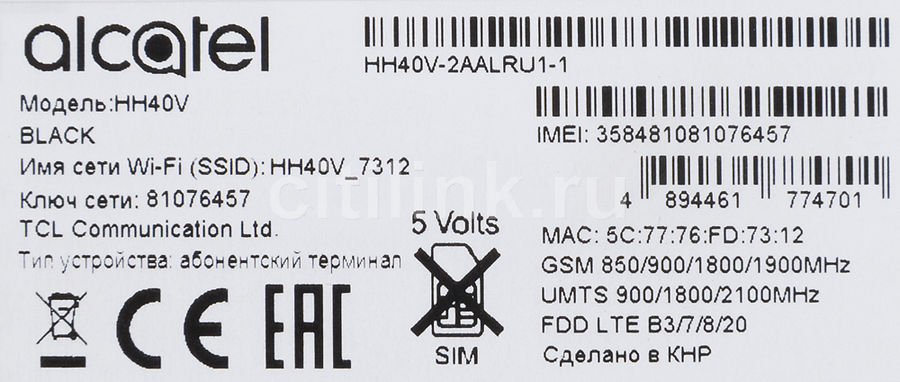 Купить Роутер Alcatel Hh40v-2aalru1-1 В Интернет Магазине . . .