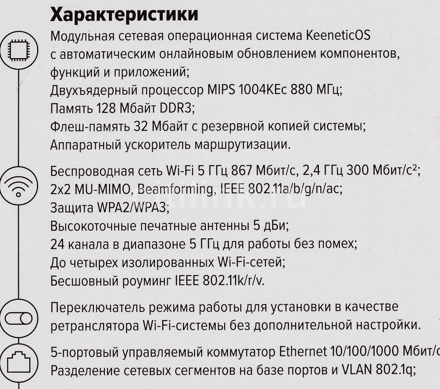 Основні характеристики . Індекс моделі . KN-3010 . Процесор . MT7621A 880 МГц, 2 ядра . Оперативна пам'ять . 128 Мбайт/с DDR3 . Флеш-пам'ять, Dual Image . 32 Мбайт/с .