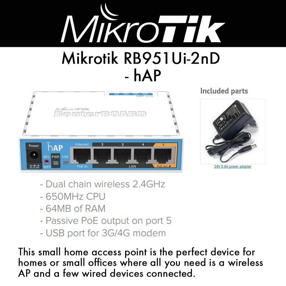 Купить Роутер MikroTik hAP ( RB951Ui-2nD ) ☑ Цена 999 грн . ☑ ELMIR .UA ☑ Доставка 1-2 дня . ⏩ Рассрочка 0%* . ⏩ Описание, характеристики, отзывы и фото .