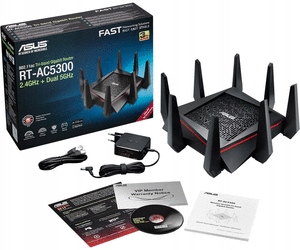 ASUS RT-AC5300 — це ультрашвидкий тридіапазонний бездротовий маршрутизатор стандарту 802 .11ac з технологією Smart Connect, що дає змогу забезпечити рекордну швидкість передавання даних у середовищі багатьох користувачів .