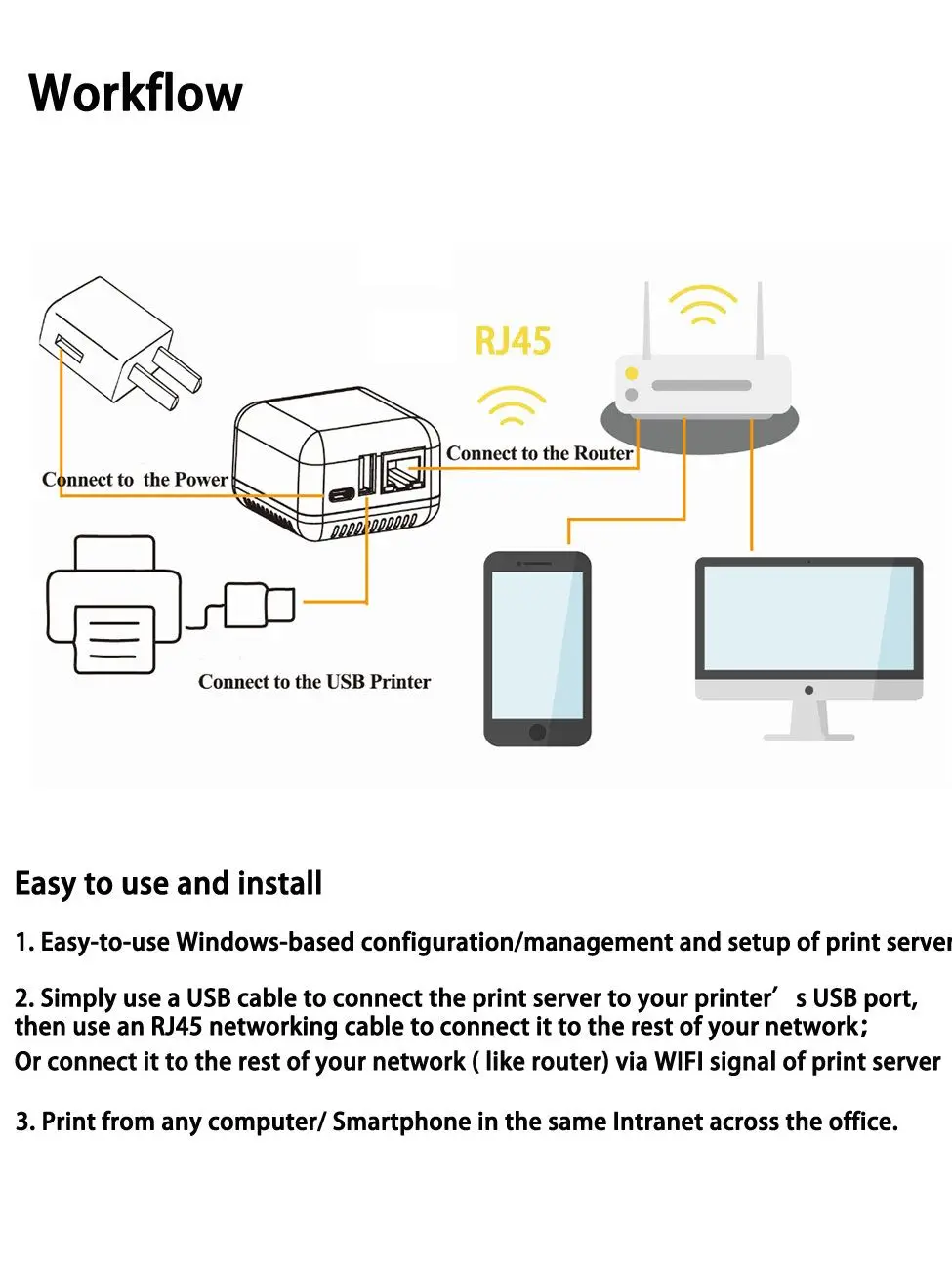 У принт-сервера есть в наличии lan-порт для подключения к маршрутизатору . Подключение по usb . Подключите ваш принтер к usb -порту роутера с помощью кабеля . Оба устройства должны быть выключены .