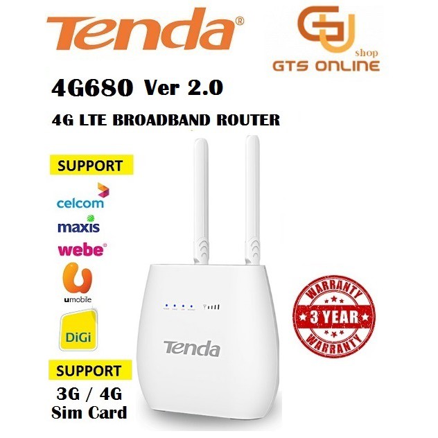 Tenda 4G680V2 .0 is the best solution for internet and voice service in area that the ˜xed network fee is expensive or the ˜xed network is not placed easily . 02 4G680 / N300 4G LTE & VoLTE Broadband Router