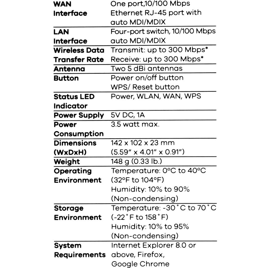 NBG-418N v2 Wireless N300 Home Router - Specifications | Zyxel