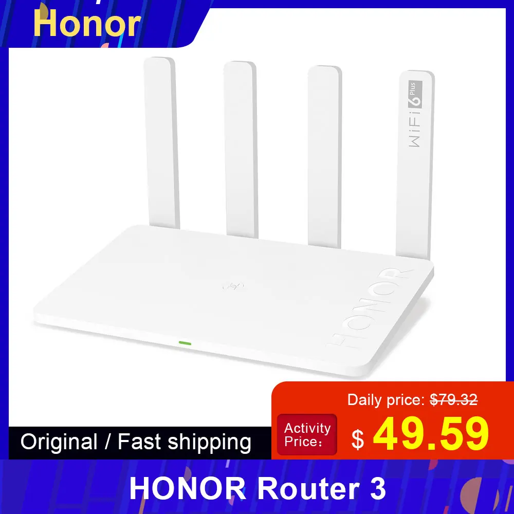 Wi-Fi роутер HONOR Router 3 . 3x1000 Мбит/с, 6 (802 .11ax), 5 (802 .11ac), 4 (802 .11n), Wi-Fi 2976 Мбит/с, IPv6 подробнее . 408 99,76 9 . Код товара: 1690366 . Wi-Fi роутер HONOR Router 3 .