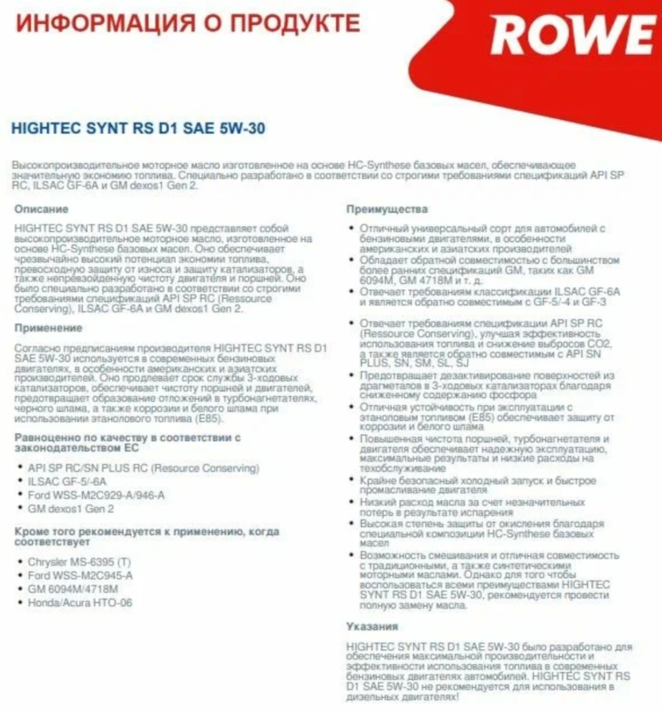 Rowe подбор масла по автомобилю