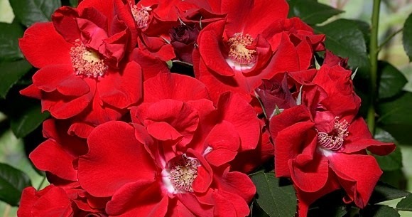 Цветки насыщенно-красные, очень яркие, полумахровые . Появляются в кистях по 10 - 12 шт . Листва темно-зеленая, средних размеров . Куст раскидистый, ветвистый, до 120 см, ширина 80 см . Размер цветка 9 . . .