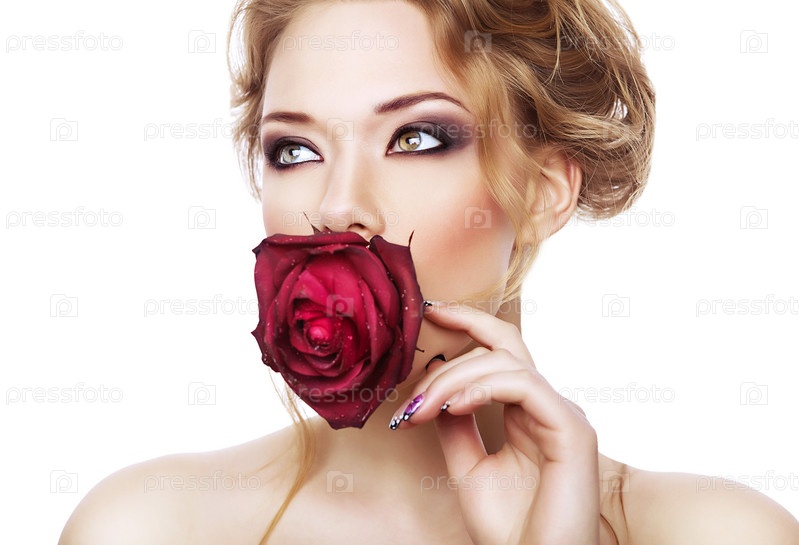 Красивая девушка с розой во рту . Стоковое фото № 2570454 . . .